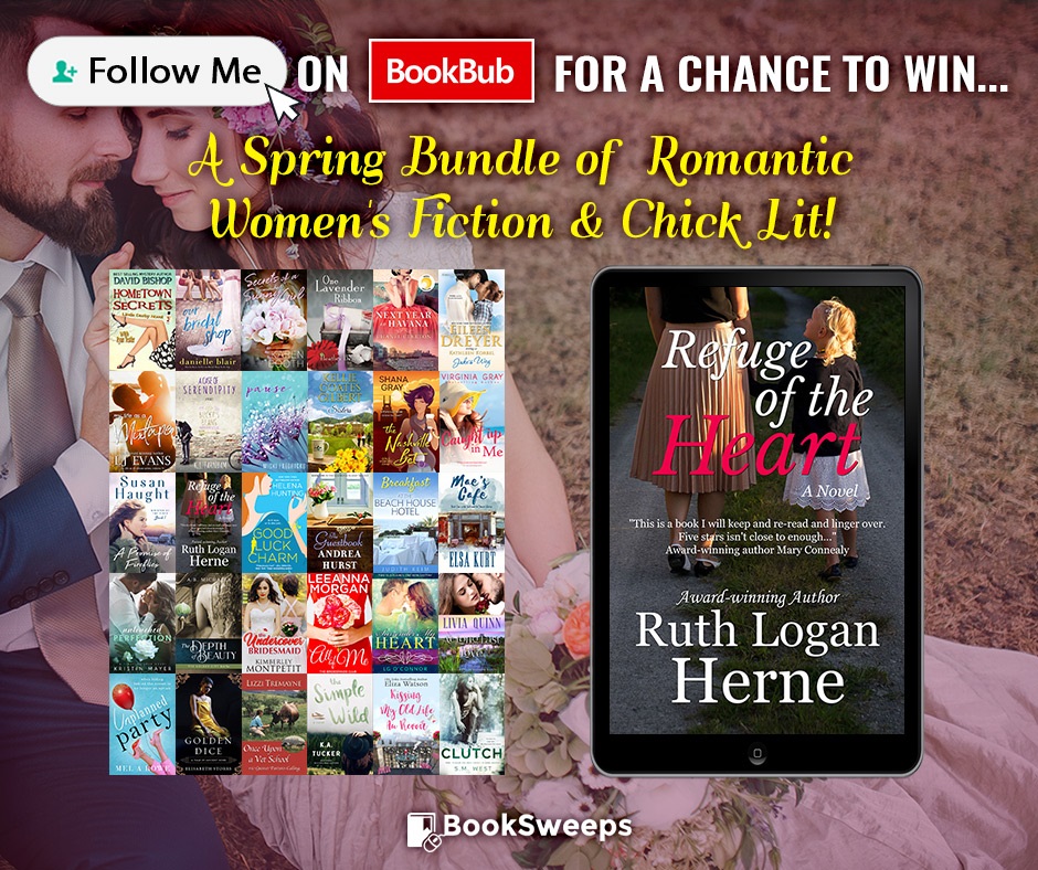 Ruthy's got a couple of things to add! Her BookSweeps Contest Promotion featuring her award-winning "Refuge of the Heart" ends Wednesday, so hurry over here... no purchase necessary!!!... follow Ruthy on BookBub and you're entered into a drawing for 30 great women's fiction books AND an e-reader! CLICK TO ENTER!