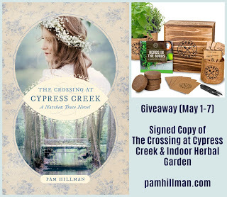 Pam Hillman's Month o' May fun continues. Pam is giving away a signed copy ofThe Crossing at Cypress Creek & an Indoor Herbal Garden Starter Kit