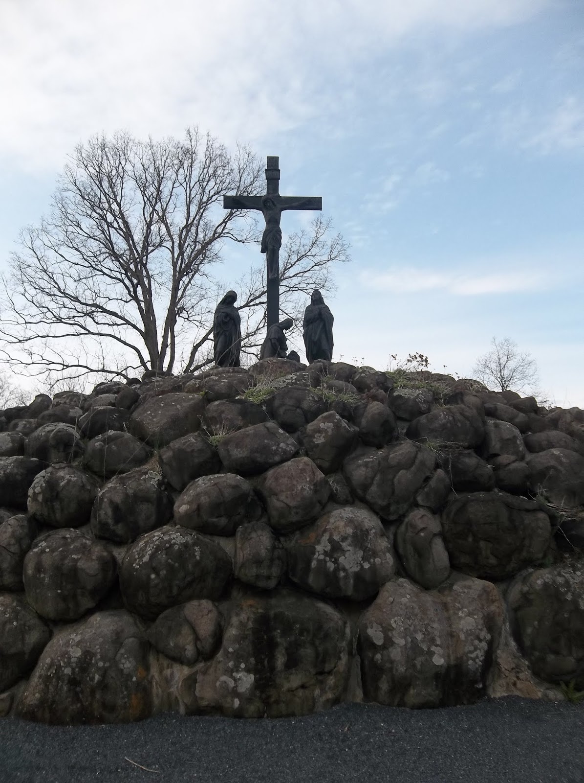 We had a lovely trip down from New York, through Pennsylvania and Maryland... Look at that sky! And this beautiful statue grouping of the women at the foot of the cross touched our hearts. They walked the walk. They didn't run and hide like so many others.... they stayed by Christ's side although I can't even imagine how difficult that must have been. So much strength and honor in this visual.