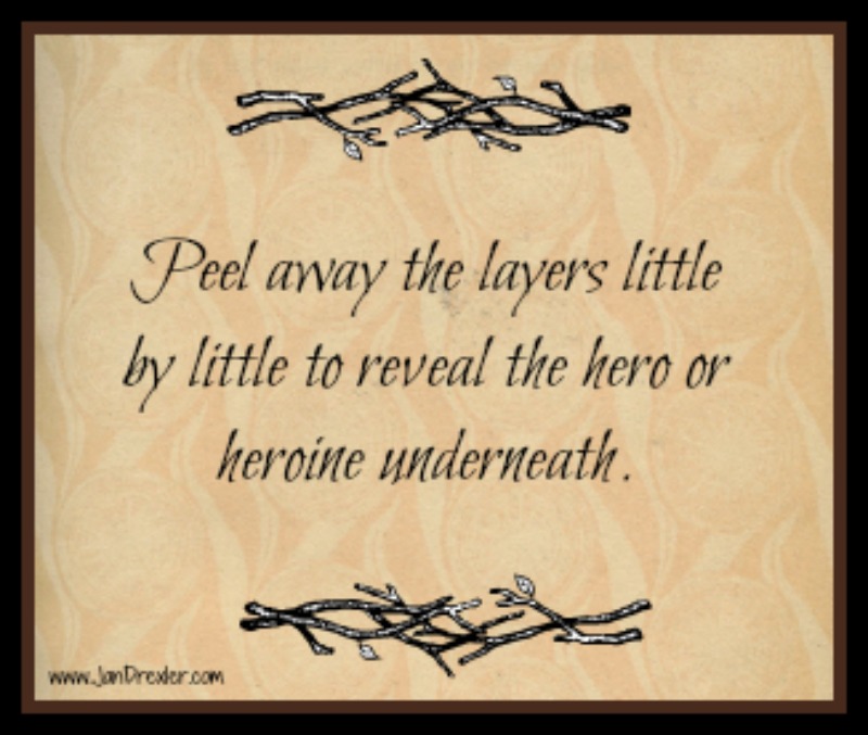 Either way, we peel our character’s layers back little by little, letting our readers learn to know our characters by their actions. Or a comment here. A thought there.