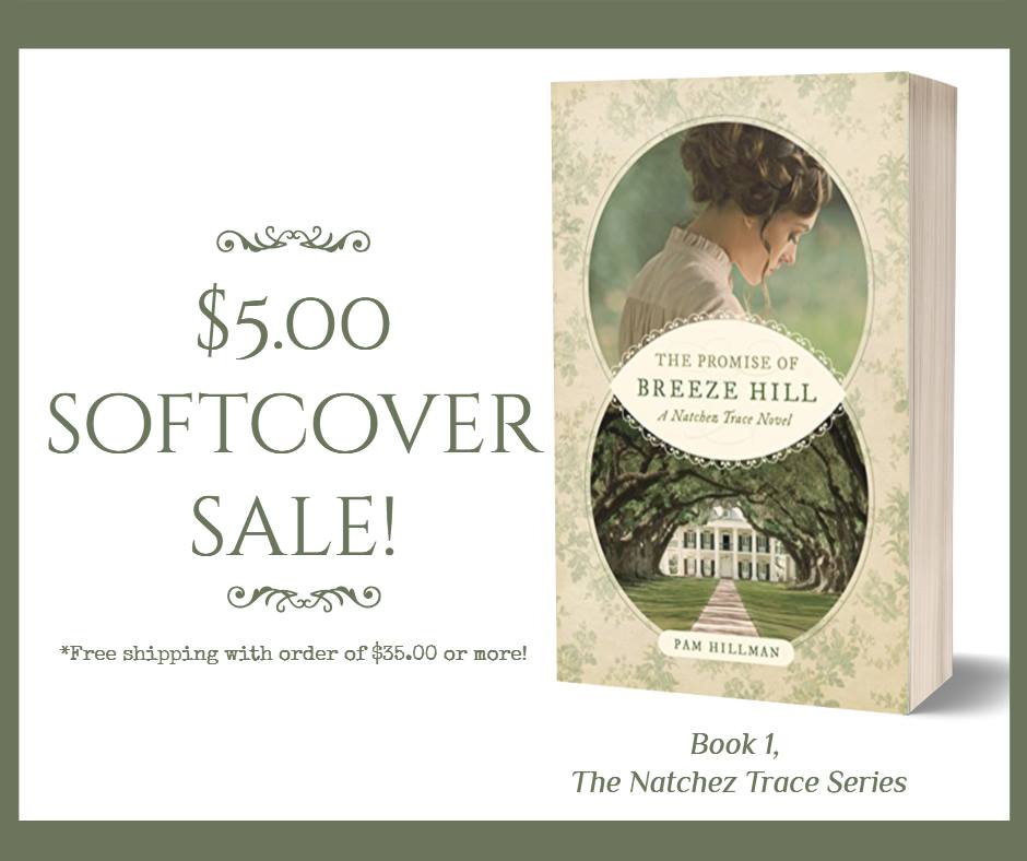 Grab The Promise of Breeze Hill, Book 1 in Pam Hillman's Natchez Trace Novel series. Book 3, The Crossing at Cypress Creek, coming in June!Click here to buy directly from the publisher.