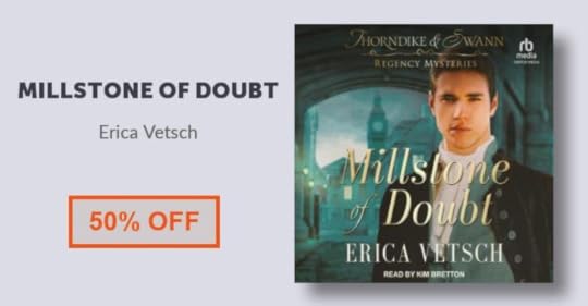 As an FYI, Millstone of Doubt, book 2 in the Thorndike & Swann Regency Mystery series is currently HALF OFF in audio form. If you like audio books, now is a great time to grab a copy! You can get yours by using THIS LINK.