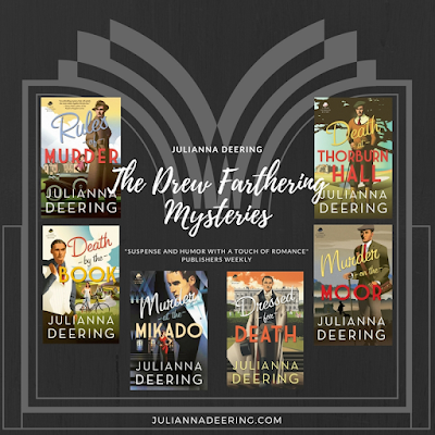 Since I was writing in part to pay tribute to the mystery writers I love (Agatha Christie, Dorothy L. Sayers, Margery Allingham, and many others) and a number of classic mysteries and romantic comedies from 1930s Hollywood (The Thin Man series in particular) with a nod to P. G. Wodehouse, I made Drew my ideal amateur sleuth — very British, wealthy, educated, stalwart, determined to find the truth, and possessing a touch of humor to go with his logical mind. A reviewer once wrote that “if Jessica Fletcher and Bertie Wooster ever had a love child, it would be Drew Farthering.” Exactly what I’d hoped for!