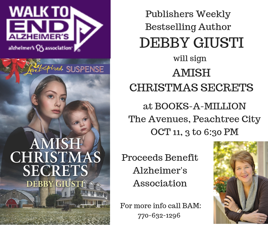 Thanks to all who supported Debby at her Peachtree City, GA signing on Thursday.The proceeds will benefit the Alzheimer's Association!
