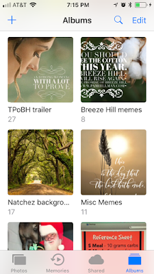 Step 2: Create an ALBUM on your phone for the project you will be working on. The one we'll be using today is for The Road to Magnolia Glen, which released in June. Save your book cover, reusable templates, and completed memes in this album. You’ll see from the above screenshot several completed memes as well as some blank templates with my Magnolia Glen cover already included for quick reference.