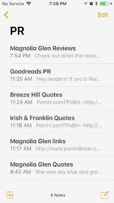 Step 3: Next, in the NOTES section of your phone, create a PR folder and then copy/paste notes when you find a cool review, or add some quotes from the book during in the final stages of the final edit. You'll be so glad you did this step when the book releases. You can add photos in the Notes section, but I prefer to keep the photos in the albums and the words (quotes, reviews, links) in the Notes section. And finally, if you’re quick and maybe a bit OCD, you can certainly make these memes right then and there, but I’m not always that organized.