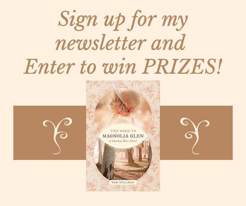Join us for the Natchez Trace series by Pam Hillman Takeover Tour beginning August 13, 2018. Hosted by JustRead Publicity Tours, it will be filled with plenty of fun stops across social media and enter for a chance to win a great prize pack from Pam! The Promise of Breeze Hill and The Road to Magnolia Glen are both available now!