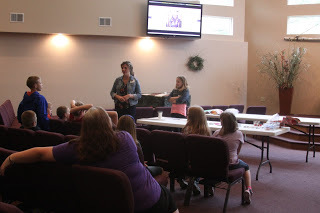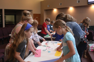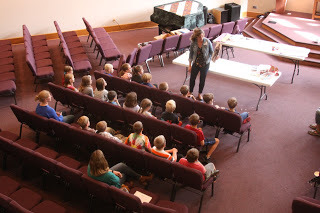 The night before co-op, I drove the two hours to her house with my four children and we spent the night. Bright and early the next morning, we woke up to a raging thunderstorm! When I went out to my Suburban, we realized one of the kids had left the back hatch open and everything was wet--including my computer. Thankfully, it still worked, since my presentation was on the hard drive. All the supplies I had brought with for the project were damp, but still usable.