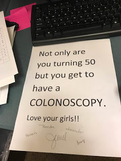 So despite black balloons and colonoscopy reminders, I shared chocolate cake, chocolate covered fruit, texts from the kids, dinner out with friends, and a beautiful summer day with Ted on my fiftieth!