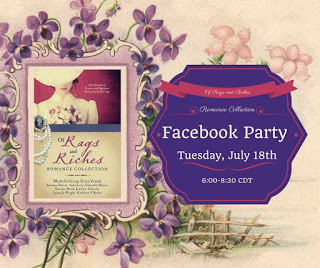 To celebrate this new collection, the authors in Of Rags and Riches will be visiting this blog for the next couple of weeks to share about their stories. We'll also be hosting a fun Facebook party on July 18th! There will be games, giveaways, and so much more. Just follow this link to RSVP and Facebook will remind you when it's time for the party to start.