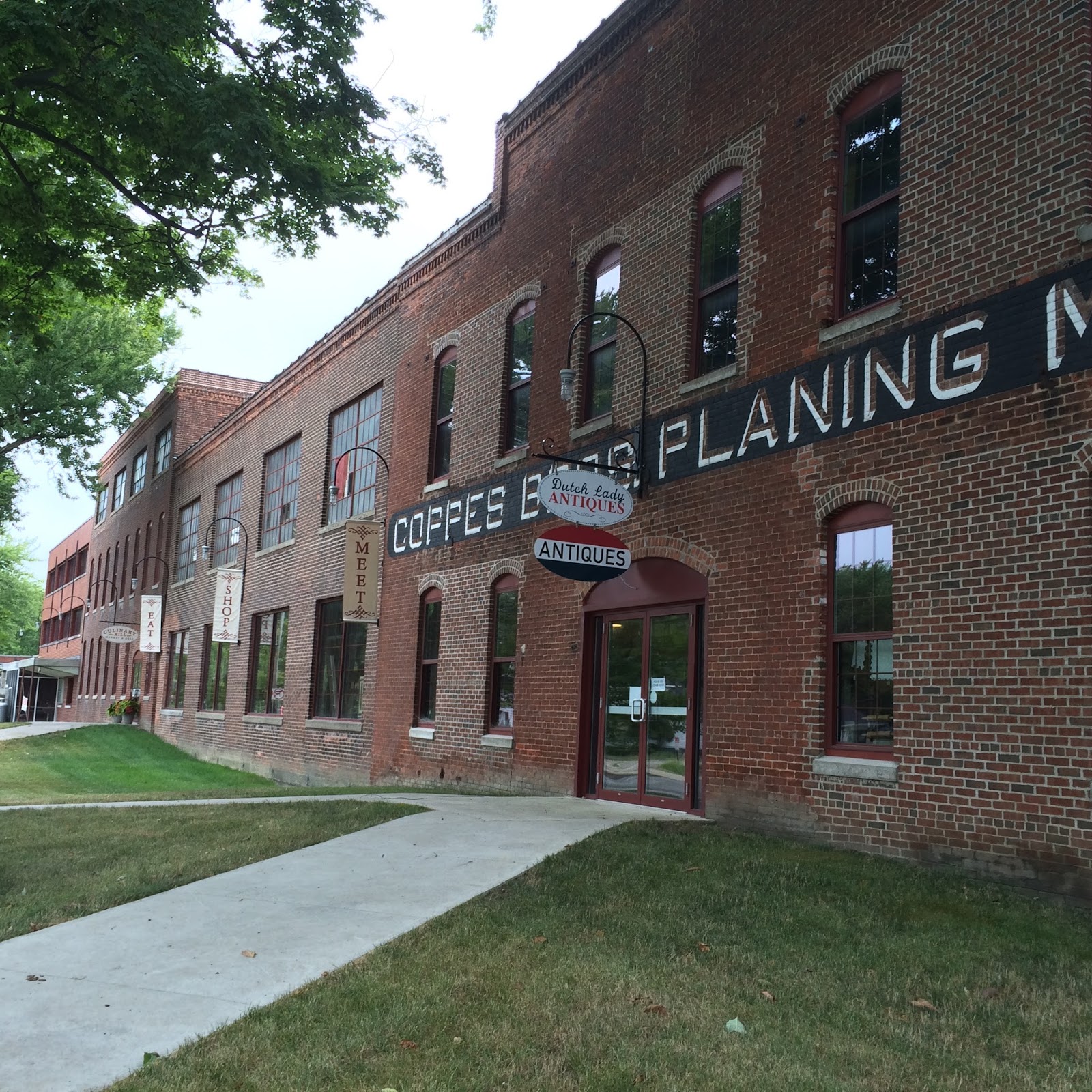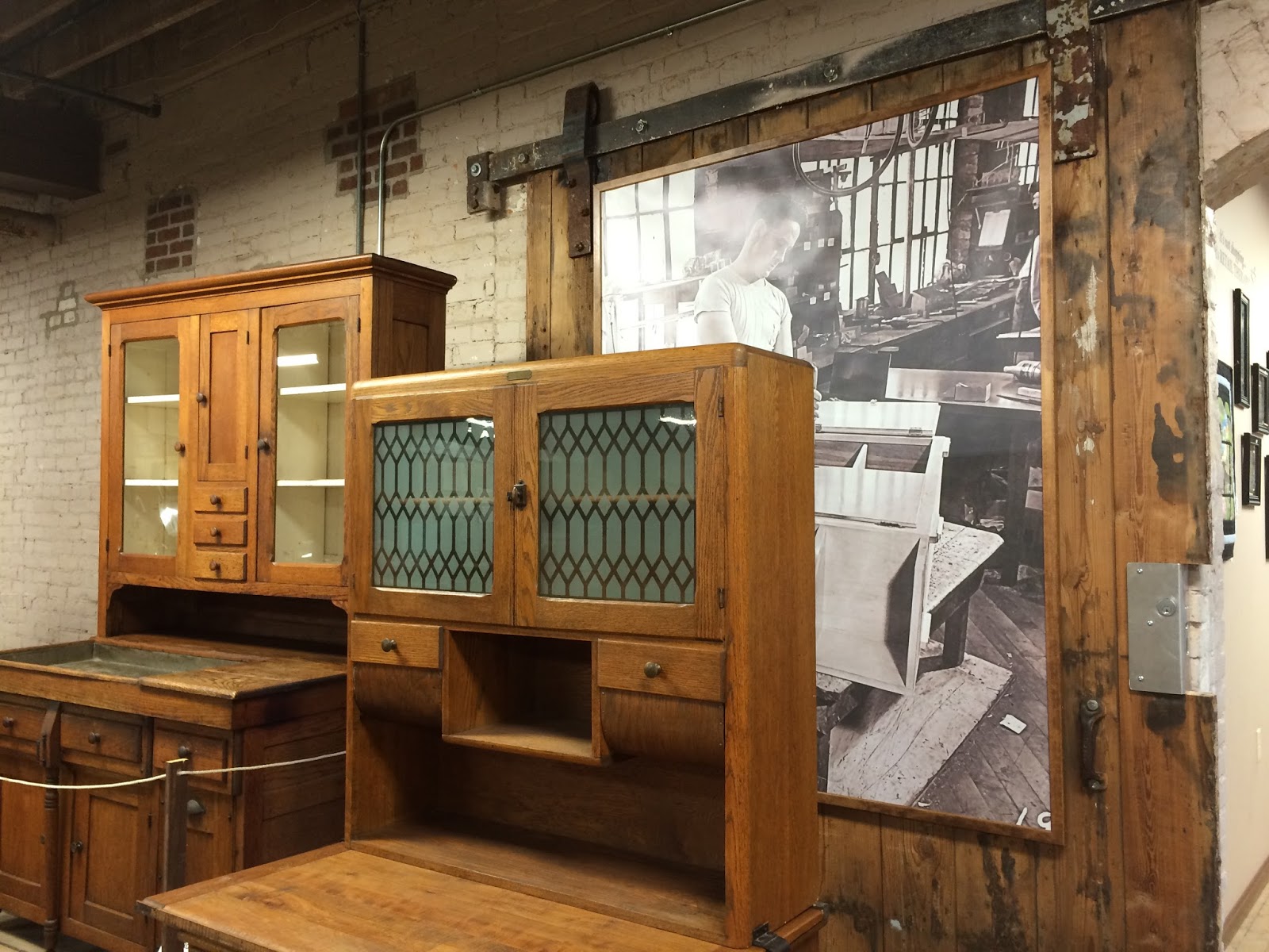 This weekend's project was in the garden, finding something from the antique store to let our Clematis climb on. So while my husband was digging out this old picket fence, I was digging through other treasure at our town's remodeled Coppes Kitchen Cabinet factory established in 1870, now Coppes Commons.
