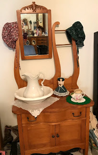 After my grandmother passed away, my cousin offer to set aside some things of hers if I would like some keepsakes. I immediately asked for her antique washstand. With my love of historical things, it just seemed the perfect piece to remember her by. I have an ewer and basin, shaving mug complete with brush and soap cake, as well as a few other items. It's one of my favorite pieces of furniture in my house.
