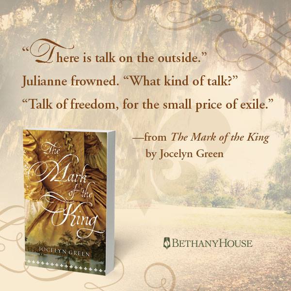 I (Jaime) am super pumped to have fellow Bethany House Publishing author, Jocelyn Green with us today. Her latest novel, Mark of the King has released this month to rave reviews and is top on my TBR list!