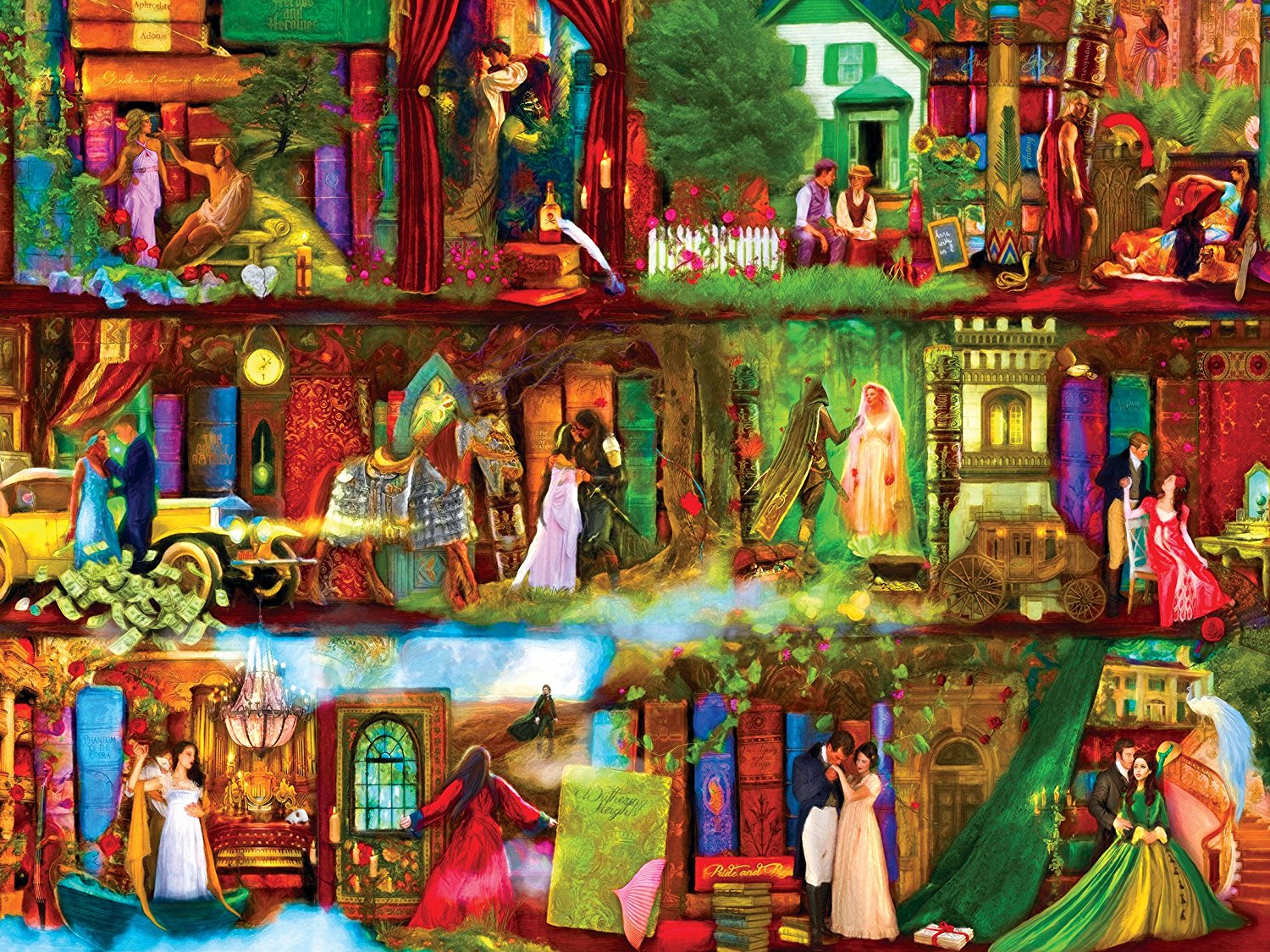 I've had fun figuring out who the heroes and heroines are in the pattern. There are twelve couples. Can you name them? (Click on the picture above to make it larger.)