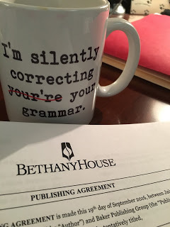 So last week, I sat down in my Administrative Assistant's office, 27 years after the day I decided to be a writer of mystery with history and twists and turns. 27 years after I prayed that someday, maybe the Lord would bless me with Bethany House. 4 years after a Bethany House "creeper" :) stumbled into my Twitter profile and held out a hand of welcome. My admin snapped pictures as I picked up my pen and for a moment, I paused. I breathed deep.