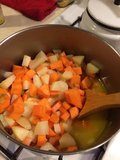We made soup from the Avoca Cafe Cookbook where Simon worked:Sweet Potato Lemongrass Soup! Mmmmm!