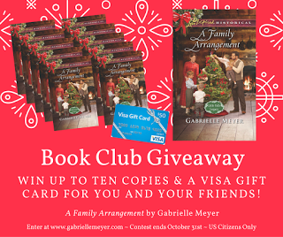 , releases in December with Harlequin's Love Inspired Historical and I'd love to share the story with your book club.* Here's what the package will include:Up to 10 free copies of A Family Arrangement$50 Visa gift card for your favorite book club treatsDiscussion questionsBehind the scenes look at the history that inspired the storyAnd a chance to chat with me in person or via Skype during the meetingHere's how to enter: 1. Sign up for my newsletter (you can find it here)
