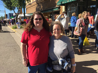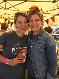 It's estimated that our town of about 8,000 swells to over 120,000 for those two days. Erica came to visit me for the weekend and we sat outside the local Christian bookstore with another writing friend, Delores Topliff, meeting with readers and signing our books.