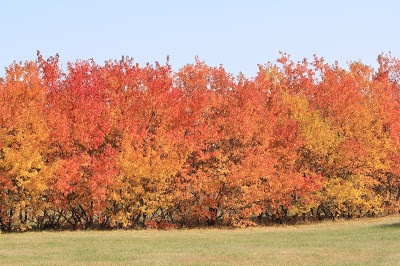 My Amur Maple hedge. I LOVE the oranges and reds and yellows. Fall is on the way in earnest here in Minnesota. The trees are changing, the air is crisper, and football games are being contested.