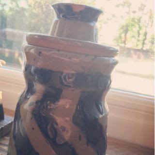 Not all heirlooms are old. Some are simple memories attached to someone else's preferences. When I was little, my mom and I used to visit the local St. Vincent's de Paul to search for used treasures. Mine were typically baby clothes to use for my dolls, stuffed animals, Nancy Drew books, and sometimes a little trinket. My mom collected jars. Unique little things that were usually hand-crafted but somehow ended up in a second-hand shop. She had a story of shelves where she stored them. A few years ago, when my parents scaled back from my childhood home, my mom decided it was time to bid them farewell. They held little value, she said. I agreed. In the scheme of life, how much can we hoard? Really. So in togetherness, we hauled boxes of "junk" back to St. Vincent de Paul's once again. Only somehow, this one, my favorite, ended up at my house. Huh. How did that happen?