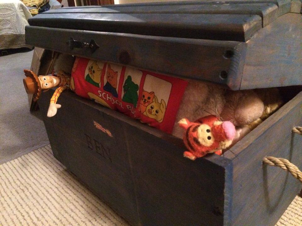 It was like seeing his childhood in review. Favorite books: he asked to take Goodnight Moon. Then it was the chest of stuffed animals, the recalling of each of their names, where he'd gotten them, who'd given them, and how he'd slept with them.