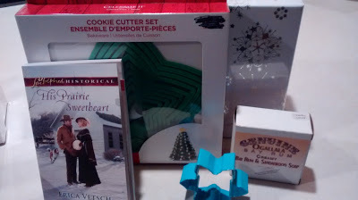 Grand Prize Package:Tote Bag from Thirty-OneSnowflake Memory Keepsake BoxCookie cutters to make your own version ofKransekake, just like SavannahBay Rum SoapSnowflake-shaped bath bombsSnowflake cookie cutterAutographed copy of His Prairie Sweetheart