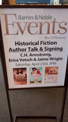 Our sign! :)In other news, I know Jaime posted about this yesterday, but I wanted to post some pics, too. Jaime Jo Wright and I had a book signing this last weekend! It was Jaime's very first signing! It was held at the Barnes & Noble bookstore in Rochester, MN, and we had a GREAT time! Lots of laughter, chatting, and meeting readers. Books were signed, books were sold out, and books were ordered! :) Many thanks to the folks from my church and from the TTL book club who came out to support us!