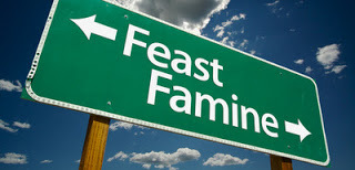 I noticed two distinct seasons in a writer's life: the feast and the famine.