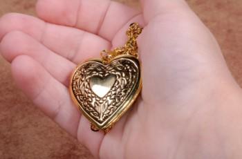 Asking him to hold the necklace, she dug into her pocket and pulled out several more, piling them on his open hand until he had to use two hands, and even then, chains and pendants and beads were dangling over the edges of his grasp.