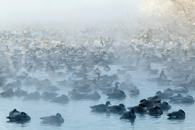 (These are some of the geese on Silver Lake here in Rochester. The water never freezes thanks to a power plant dumping warm water into the lake all year.)