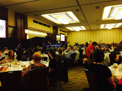 Another view you might not have seen is lunch time with nearly 500 men and women, okay, mostly women. After lunch, imagine this entire room standing, arms raised in awe of our God in deep worship as this group is comprised of people from all 50 states and several countries, yet in Christ, in worship, and in writing--we unite. The holy communion was palpable and I wish I could share it with all of you: