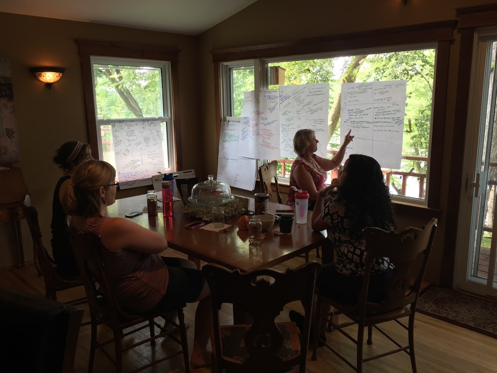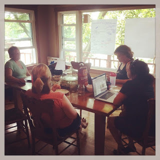 This past week I hosted a writing retreat at my house. The primary purpose for the retreat (other than spending time with my fabulous friends!) was to brainstorm story ideas. All five of us came with a spark of an idea, and walked away with a fully plotted story. My guests were Susan May Warren, Melissa Tagg, Lindsay Harrel, and Alena Tauriainen. All of us have been to Susie's Storycrafter's and Deep Thinker's Retreats, so we're all familiar with the My Book Therapy elements and it helped us work well together. There's nothing better than five minds working on a story! Some stories fell into place easily, while others took a bit more work to lay down. Some characters were easy to flesh out, while others needed more tweaking. It was fun and challenging. We laughed until we cried, and we shared some personal stories as our fictional ones took shape. I'm so excited about everyone's story--and we got a sneak peek at Susie's next series!! I'm especially thrilled about my next story, set in 1864. I can't wait to get it started. Here are just a few photos from our retreat.