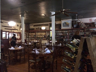 I stepped inside the general store but no one was around. Inside the tables were set with linen table clothes and crystal, while the walls were lined with an eclectic collection of old merchandize. At the check out counter was an ancient cash register American Pickers would have loved. I loved it.