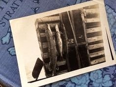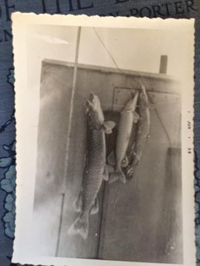 Inside, I could smell the stale scent of wood, tar paper, and the charred wood that had warmed Grandpa from the little stove inside. I could recall the times we'd bundle up, walk out onto the lake to see if Grandpa had caught any fish for dinner. Along the wall leaned grandpa's fish spear. Out on the ice, he would let it rest on the side of the shanty by a hook over the hole in the ice. When a fish swam by, he would spear it. My mother says he would also take the spear on a spring night when the sucker fish swam upstream and spear them in the river, bringing home tubs full of forty or fifty fish grandma would can.Sometimes I order Rainbow Trout from the menu just to remember the smell and taste of it frying in the pan at Grandma's house well after dark.