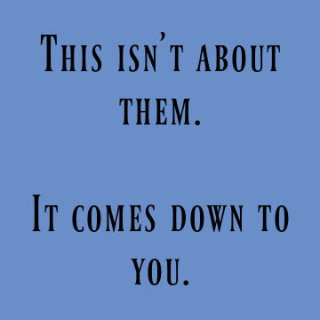 2. Take care of you. If someone is asking you to meet their needs but doing so means you’re not listening to or taking care of yourself, kindly but firmly refuse. Don’t agree to things to make the other person feel better while ignoring what you need. If they are broken over their own actions, you’ll be tempted to try to fix it. Be as kind as possible at all times but give yourself space to sort and process. You’re getting to know a new them and a new you, neither of which you ever wanted to see or become. Don’t rush yourself.