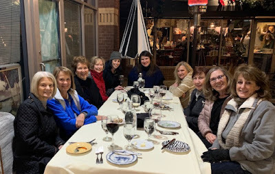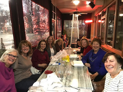 Now we meet at restaurants with outside dining.Here we're on an enclosed patio.