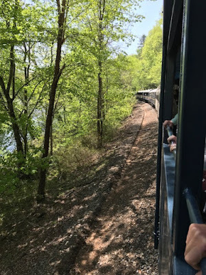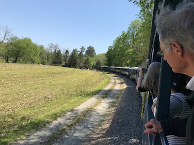The train’s plaintive whistle echoed through the hills alerting folks of its approach whenever we passed homes—some expansive and modern, others small and cozy. In true neighborly fashion, folks stopped what they were doing and waved as we passed. The Toccoa River is known for trout fishing, and we spotted a number of anglers in their waders casting their reels in the fast-flowing waters. Although intent on their sport, even they nodded a greeting as they waited for a nibble on their lines.