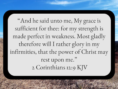The verse for this story is, “And he said unto me, My grace is sufficient for thee: for my strength is made perfect in weakness. Most gladly therefore will I rather glory in my infirmities, that the power of Christ may rest upon me.” 2 Corinthians 12:9 KJV
