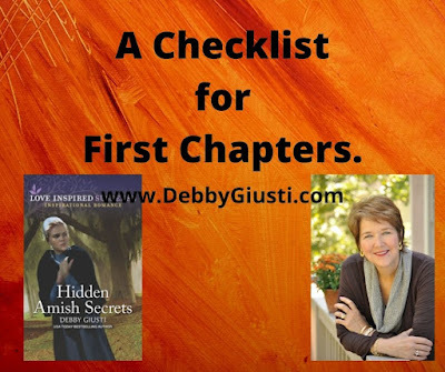 Wednesday: Debby Giusti shared her "Checklist for First Chapters."