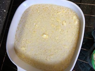Back to my traditional sugar-laden egg custard. It turned out fantastic, and I’m including the recipe here. This recipe is several years old. I’ve had the cookbook for a long time, and there’s no date in it, so I’m not sure how old exactly. I wasn’t sure if I’d mixed it correctly because the “batter” wasn’t batter at all, but the consistency of a half-melted milkshake. Even though I had my doubts, I trusted the recipe.