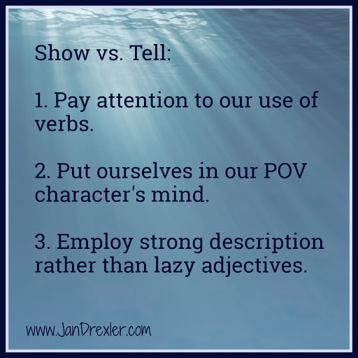 Monday: Jan Drexler brought us a Back to Basics Post on Show vs Tell.