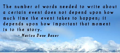 And then, of course, there is the manipulation of story time. As I mentioned earlier, to move the story along, compress all those days and weeks when nothing of significance happens into a short transition. Conversely, take your big payoff scenes and really focus in on them. I’ll talk more about that a little later.
