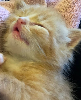Cha-Cha in a Milk Coma4) Growing too big for their britches. As Mimi and Cha-Cha have grown, they’ve also become more aggressive. I have plenty of scratch marks where they’ve fought for the bottle. I use a towel to wrap them up while feeding, and can only feed one at a time. Occasionally, I’ve managed both, but it’s easier to just do one. (Hmmm, some of you have written more than one manuscript at once, yes?) My granddaughter SO wanted to give them their bottle, but she realized right quick that they were way too aggressive. Instead, she entertains one while I feed the other one. If they just realized that I have the bottle right there. It’s full of warm milk, and it’s not going anywhere.