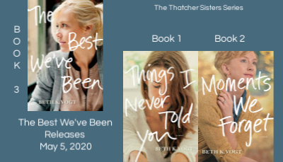 AUTHOR BIO: Beth K. Vogt believes God’s best often waits behind the doors marked “Never.” Having authored nine contemporary romance novels and novellas, The Best We’ve Been, the final book in Beth’s Thatcher Sisters Series with Tyndale House Publishers, releasers May 2020. Other books in the women’s fiction series include Things I Never Told You, which won the 2019 AWSA Award for Contemporary Novel of the Year, and Moments We Forget. Beth is a 2016 Christy Award winner, a 2016 ACFW Carol Award winner, and a 2015 RITA® finalist. An established magazine writer and former editor of the leadership magazine for MOPS International, Beth blogs for Learn How to Write a Novel and The Write Conversation and also enjoys speaking to writers group and mentoring other writers. Visit Beth at bethvogt.com.