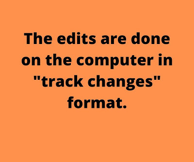 Line edits are done by either the acquiring editor or a freelance editor contracted by the publishing house. The edits are done on the computer in “track changes” format. The editor then returns the edited manuscript to the writer.