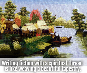 Writing fiction with a spiritual thread is like weaving a beautiful tapestry. Each thread of color is needed to make an elaborate picture or story. The spiritual aspect of the novel is interwoven seamlessly like many other elements such as setting and plot. It's a necessary part that works in conjunction with others to create a fully functioning story.