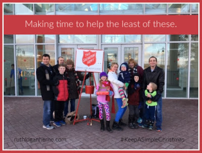 I want to wish you all a beautiful holiday season, a blessed Christmas, and a peace-filled, prayer-filled Advent. But with the demands and expectations we put on ourselves, a peace-filled prayer-filled December is tricky, isn't it? So here are some ideas for simplifying things: Ring some bells for charity. This has become a family tradition and look how our group has grown! Isn't that cool? In the beginning it was just me, then me and Mandy and Beth, and now whole families join in and every year I'm reminded of how inhospitable our winter weather is here in Western New York.