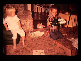 We stopped taking pictures because every year we looked the same and sometimes we were even in the same bathrobe and slippers. But Mom always had the tree up with her special ornaments and she would put up the nativity scene that I made for her in the seventies.