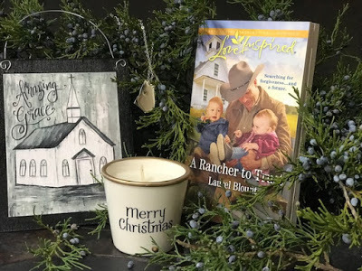 We can no longer attend that stately old church, but I’ll always treasure the many beautiful Christmas memories we made there. So, for today’s “Georgia Christmas Memory” giveaway I’m offering a Georgia necklace, a “Merry Christmas” candle, an ornament featuring a sweet church, and a copy of my brand-new Love Inspired romance A Rancher to Trust—perfect to read beside a twinkling Christmas tree!