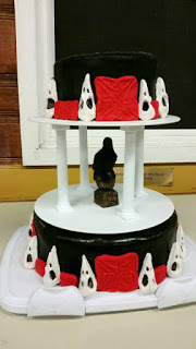 After ritual there was a community feast and concert by Mama Gina, who is an amazing storyteller and singer that truly, I think, deserves the title of bard. Hearing her perform her song "Ruby" live raised the hair on my arms; its so much more evocative live than recorded (although that is still worth hearing too). There seemed to be a nice feeling of conviviality among everyone as we shared food and great music together. The cake that the caterer, Dawn DeMeo, had prepared for the feast was beyond amazing, and I must add that she made a second smaller cake for those of us who couldn't have the gluten/regular flour version which was equally amazing. (And yes, for anyone wondering, the first pieces went as offerings, to be sure that the Gods and spirits shared the feast too).